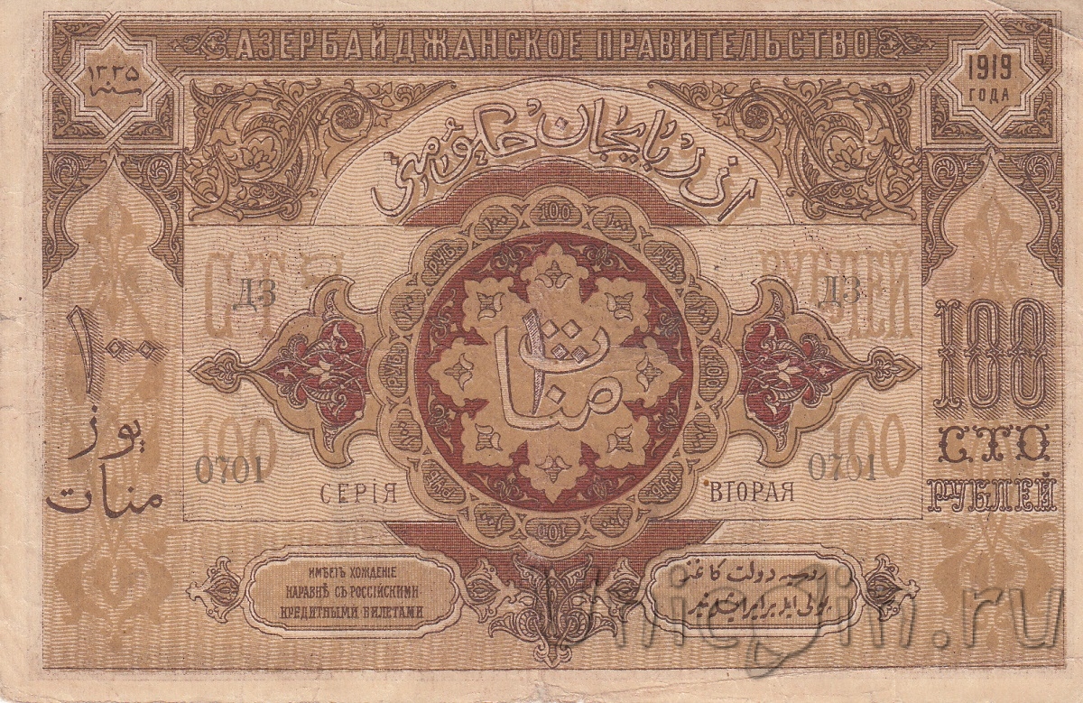Азербайджанская Демократическая Республика 100 рублей 1919