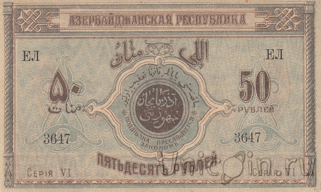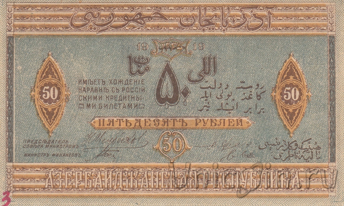 Азербайджанская Демократическая Республика 50 рублей 1919