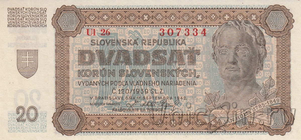 Словакия 20 крон 1942 г.
