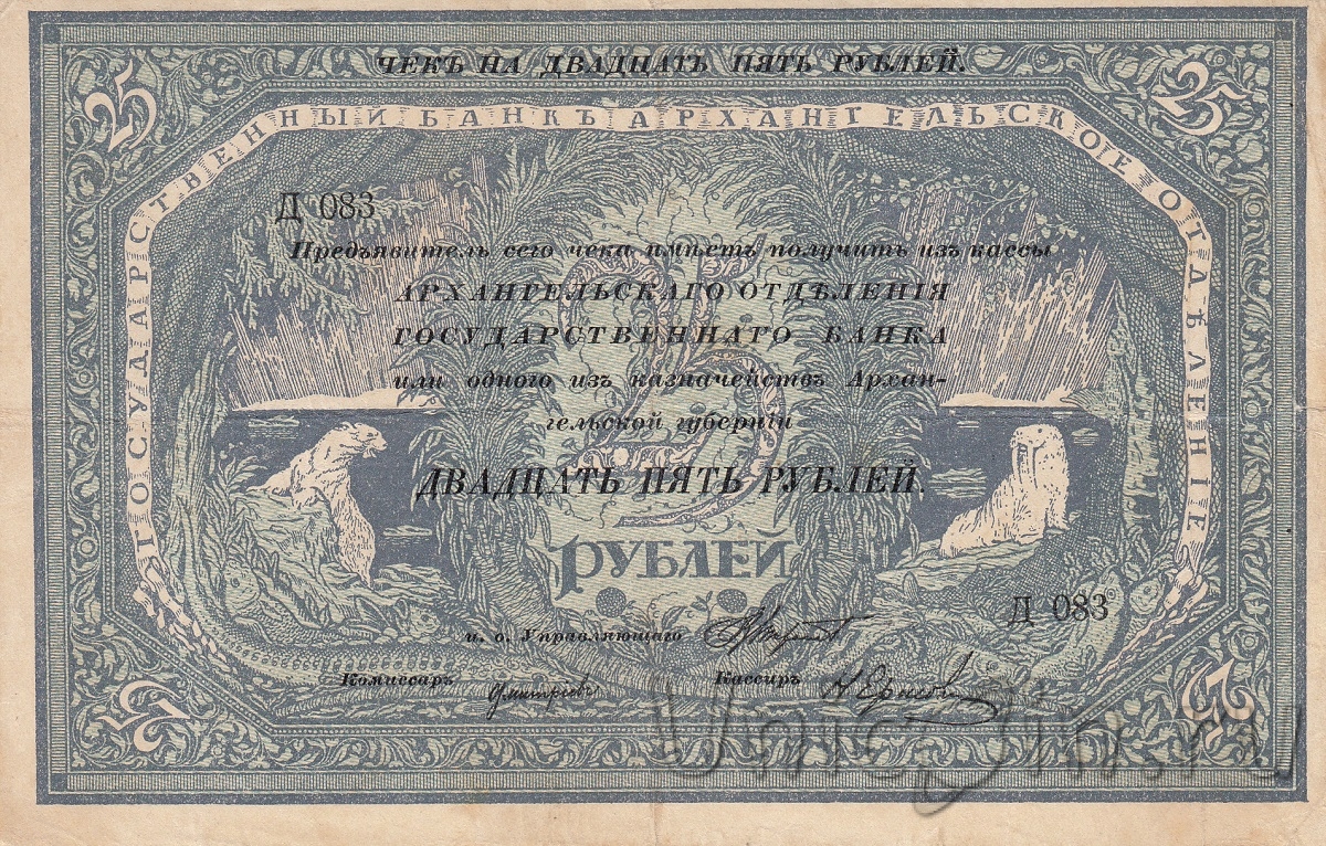 Архангельское Отделение Государственного Банка 25 рублей 1918