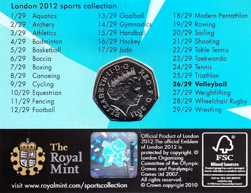 Великобритания 50 пенсов 2011 Волейбол (в карте)