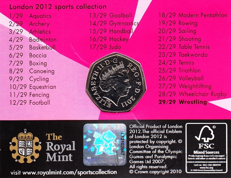 Великобритания 50 пенсов 2011 Борьба (в карте)