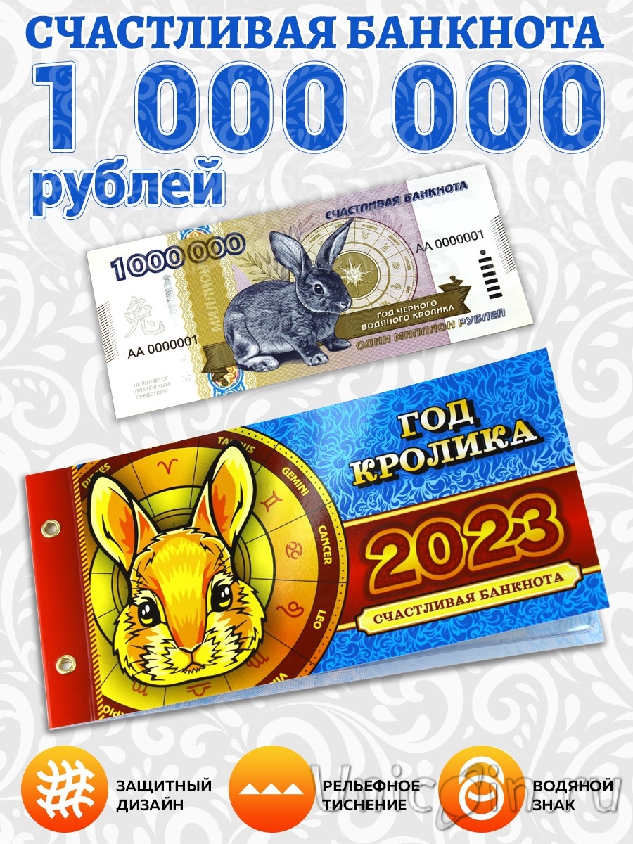 Сувенирная банкнота 1 миллион рублей 2023 - Год кролика