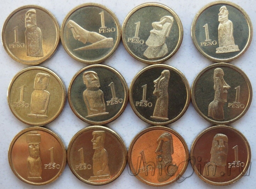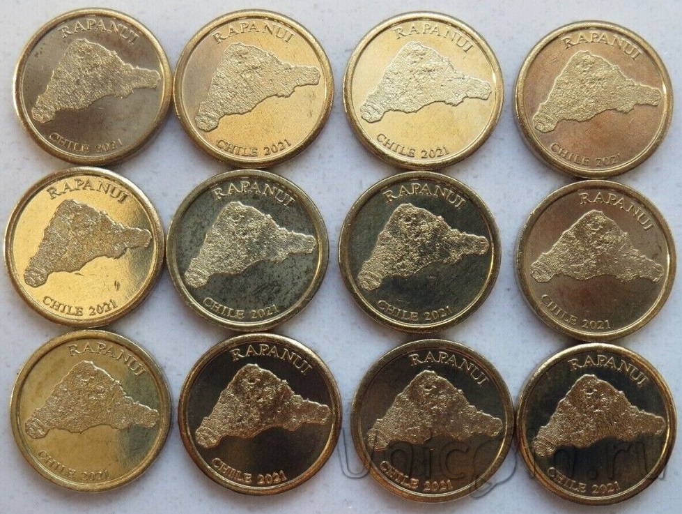 Остров Пасхи (Рапануи) набор 12 монет 1 песо 2021 г. Статуи Моаи