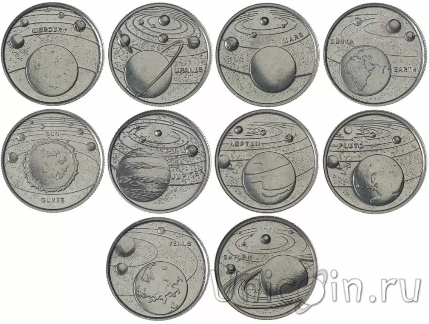 Турция набор 10 монет 1 куруш 2022 г. Солнечная система