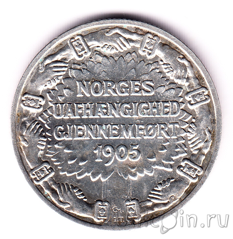 Норвегия 2 кроны 1906 г. Первая годовщина независимости Норвегии