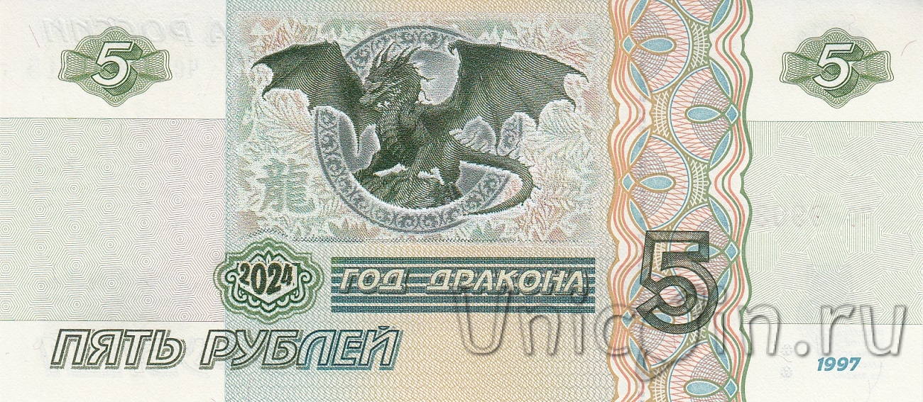 Сувенирная банкнота 5 рублей - Новый год 2024 - Год дракона