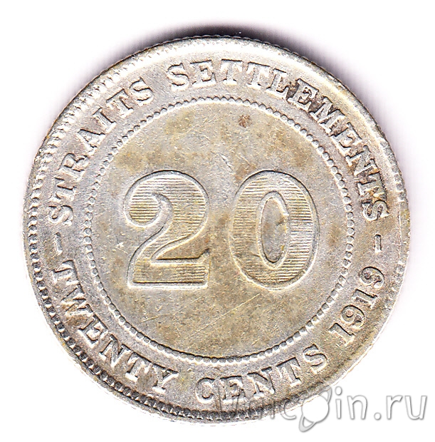 Стрейтс-Сетлментс 20 центов 1919 г.