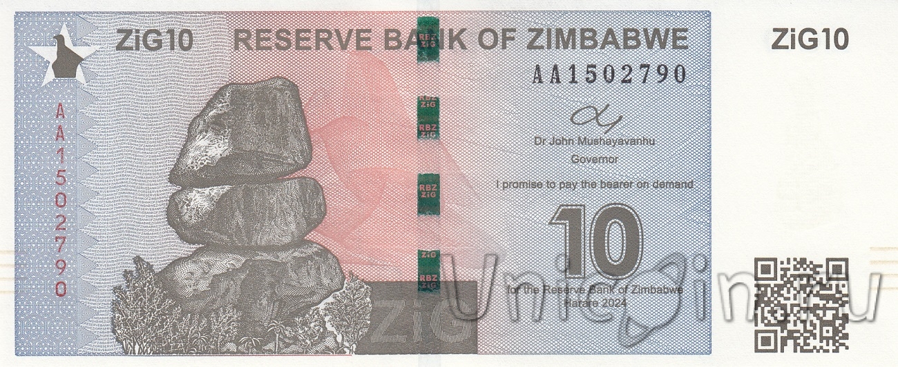 Зимбабвийский золотой («ZiG») является официальной валютой Зимбабве с 8 апреля 2024 года, подкреплено твердыми активами на сумму 575 миллионов долларов США: иностранной валютой, золотом и другими драгоценными металлами. Он заменил зимбабвийский доллар , который пострадал от быстрого обесценивания : официальный обменный курс превысил 30 000 зимбабвийских долларов за доллар США на 5 апреля 2024 года, в то время как параллельный рыночный курс достиг 40 000 за доллар США. Годовая инфляция в Зимбабве в марте 2024 года достигла 55,3%.