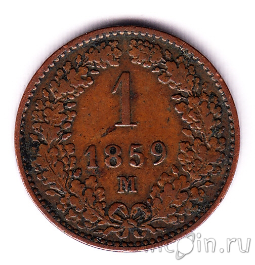 Австрия 1 крейцер 1859 г. Отметка монетного двора "M" - Милан