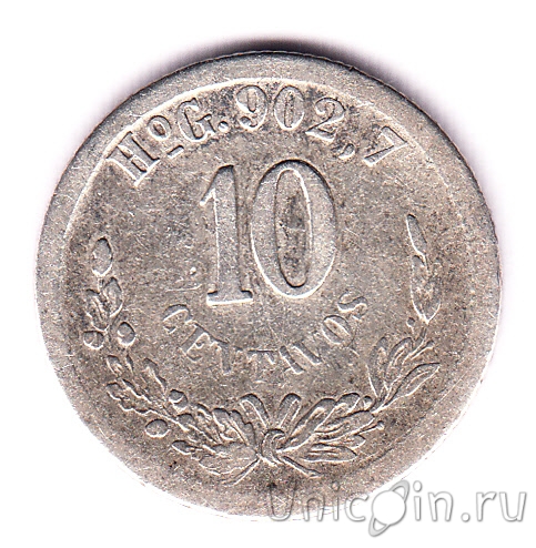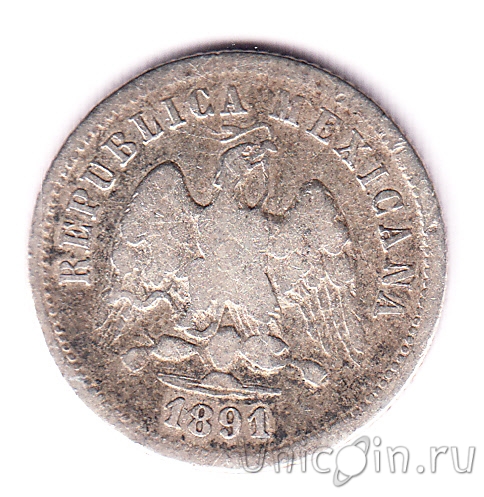 Мексика 10 сентаво 1891 г. Отметка монетного двора: "Ho G" - Эрмосильо