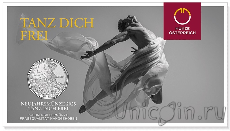 Австрия 5 евро 2025 Танцуй свободно (серебро)