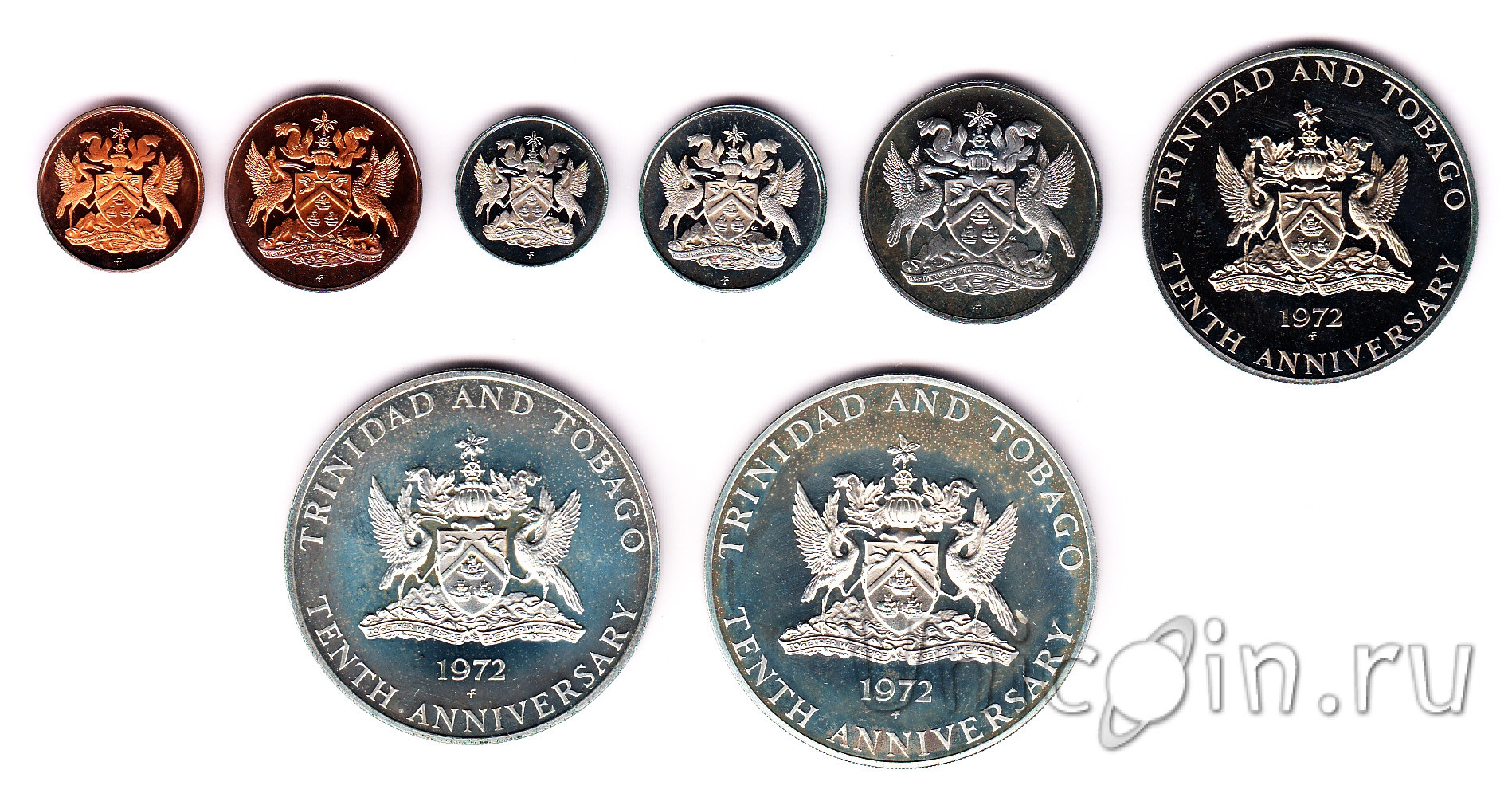 Тринидад и Тобаго набор 8 монет 1972 г. 10 лет Независимости