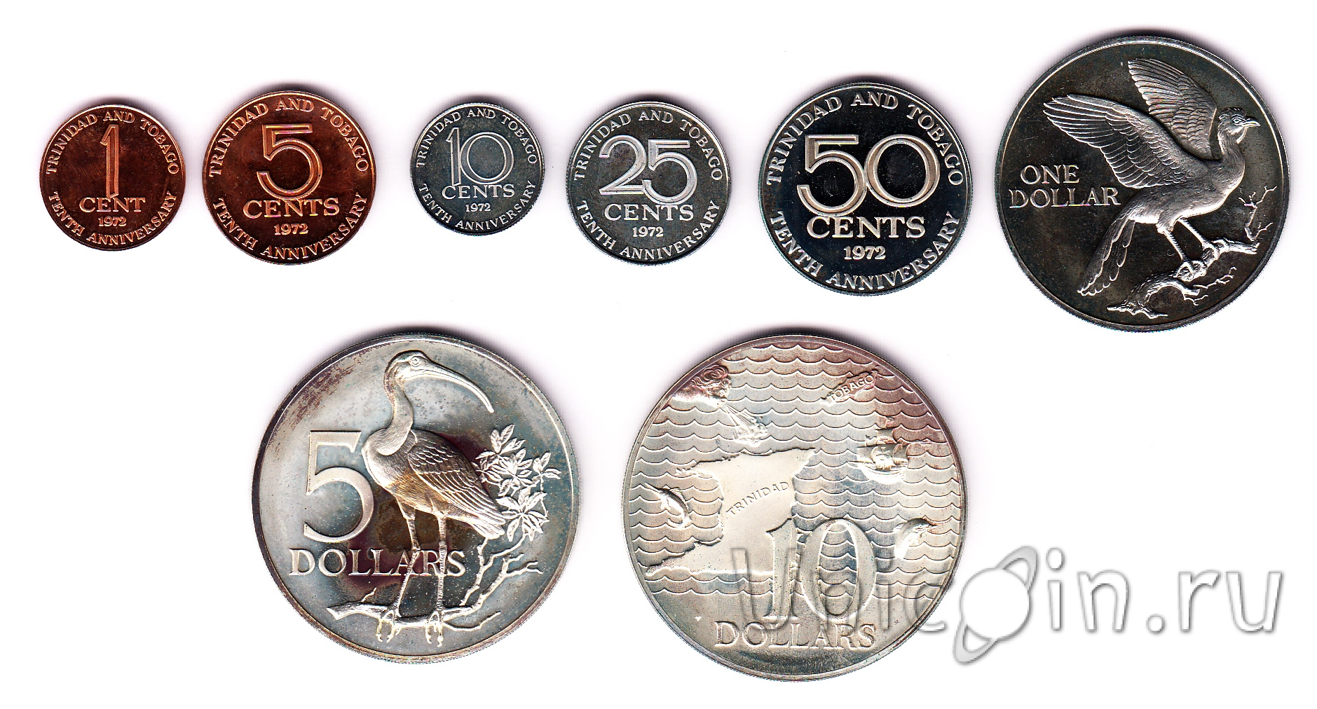 Тринидад и Тобаго набор 8 монет 1972 10 лет Независимости
