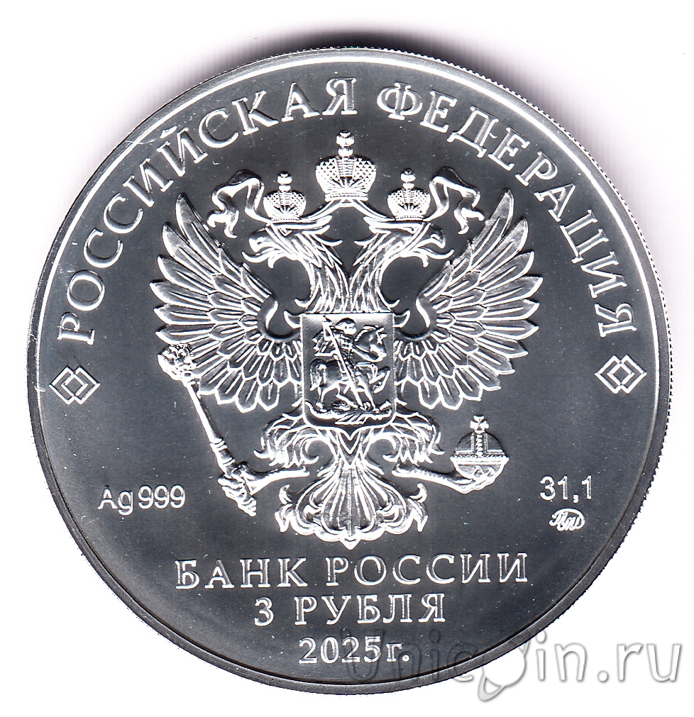 Россия 3 рубля 2025 Георгий Победоносец (ММД)