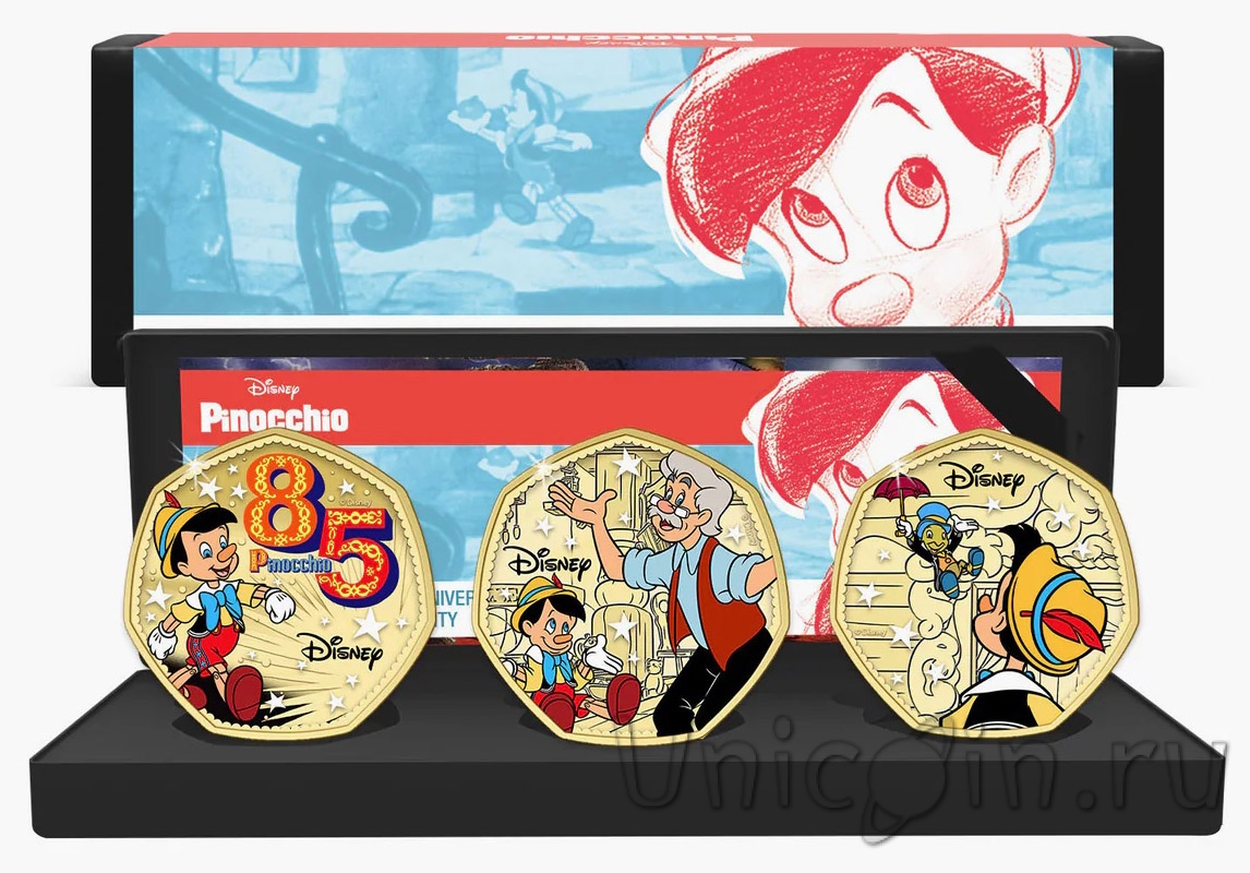 Соломоновы острова набор 3 монеты 50 центов 2025 г. Пиноккио