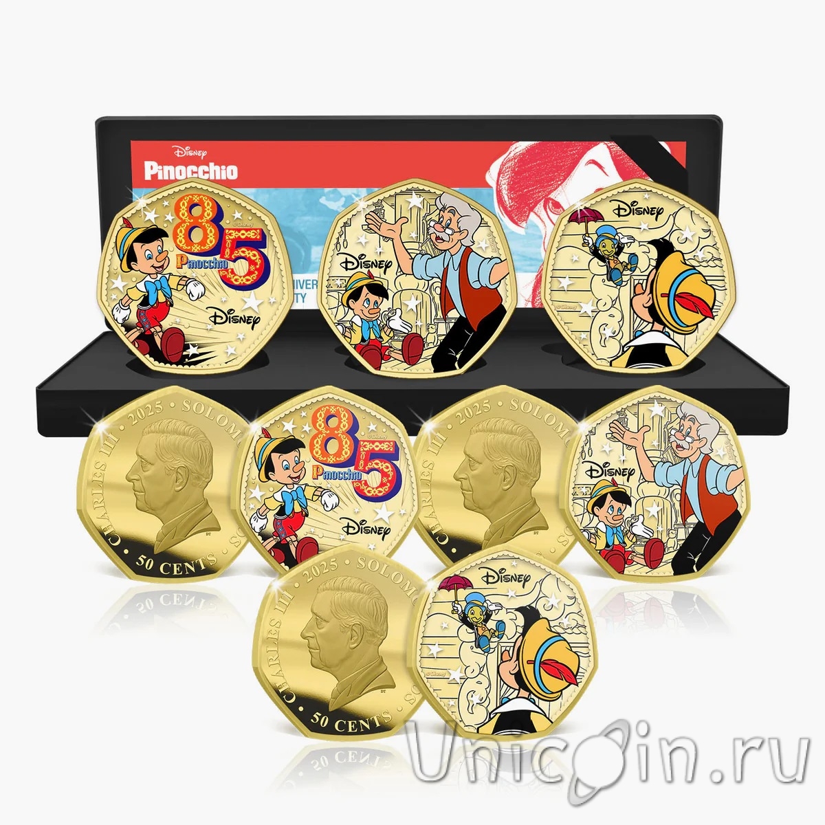 Соломоновы острова набор 3 монеты 50 центов 2025 Пиноккио