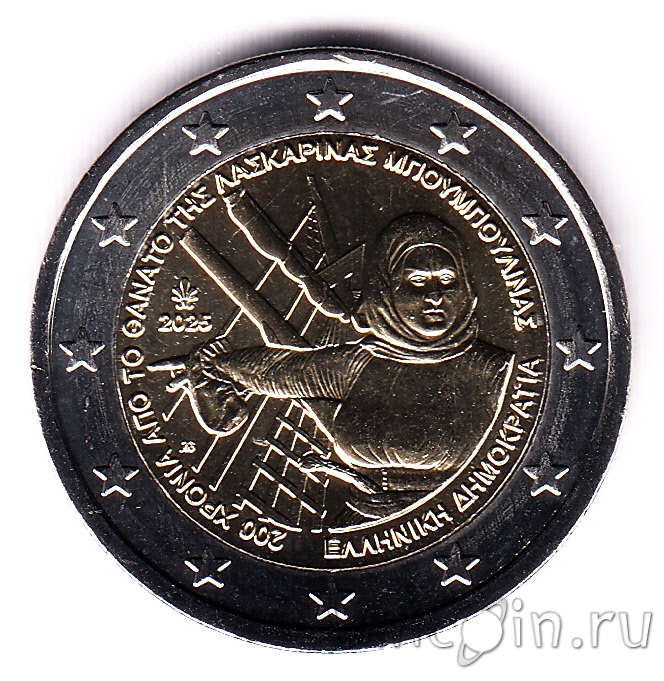 Греция 2 евро 2025 г. 200 лет со дня смерти Ласкарины Бубулины