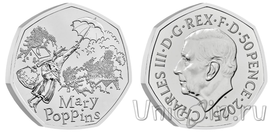Великобритания 50 пенсов 2025 Мэри Поппинс