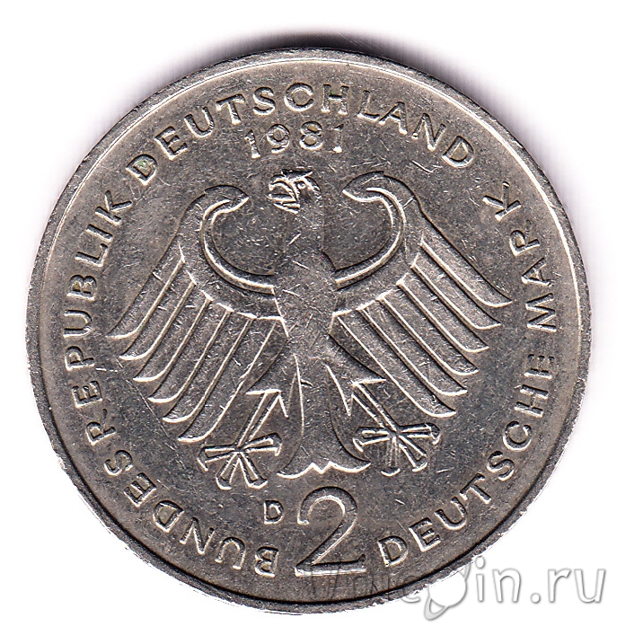 ФРГ 2 марки 1981 Конрад Аденауэр (D)