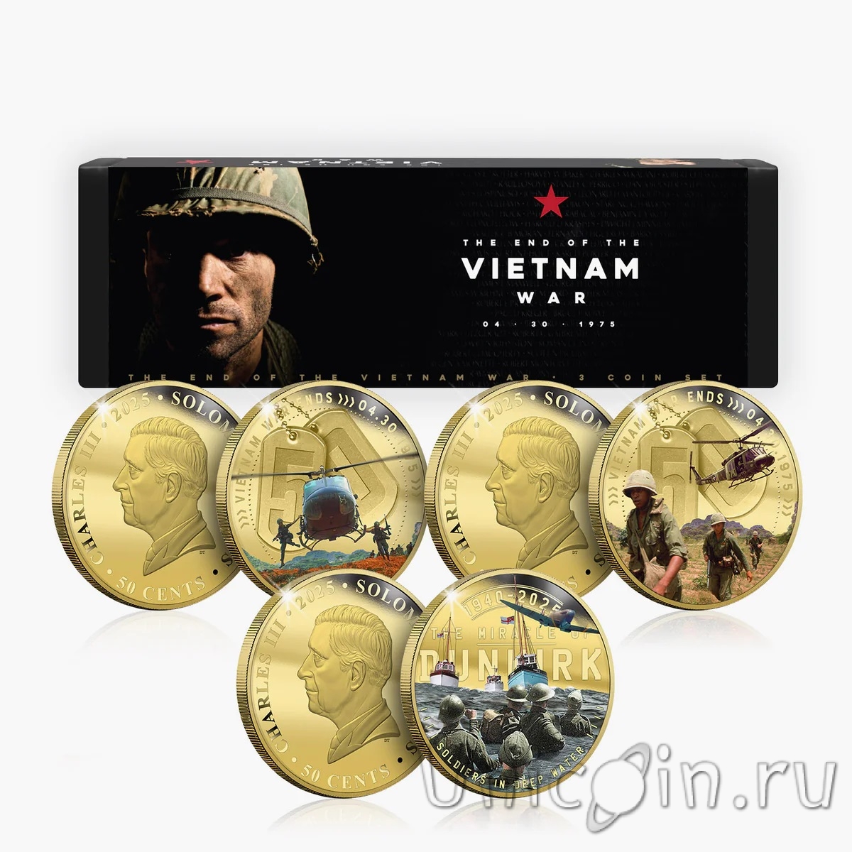 Соломоновы острова набор 3 монеты 50 центов 2025 Война во Вьетнаме