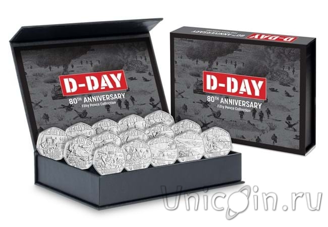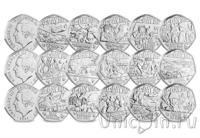 Набор из 15 монет: остров Мэн, Джерси и Гернси - 80 лет высадке в Нормандии