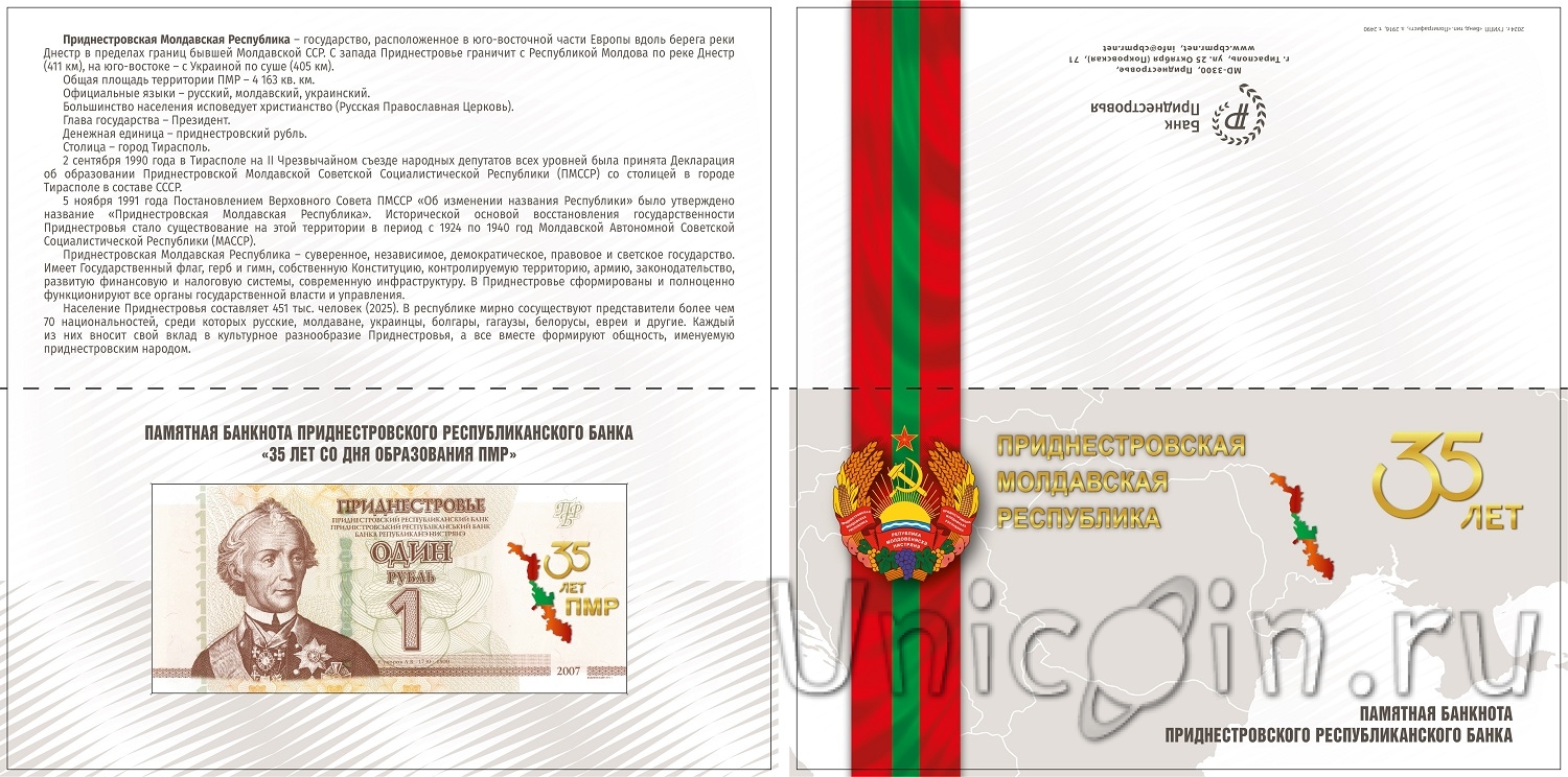 Приднестровье 1 рубль 2025 35 лет со дня образования ПМР (в буклете)