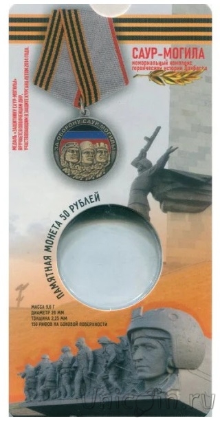 Блистер для монеты 50 рублей Год защитника Отечества. Саур-Могила