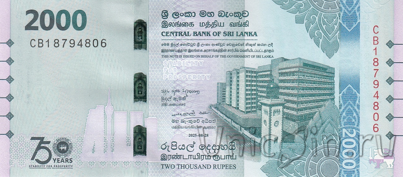 Шри-Ланка 2000 рупий 2025 г. 75 лет Центральному банку