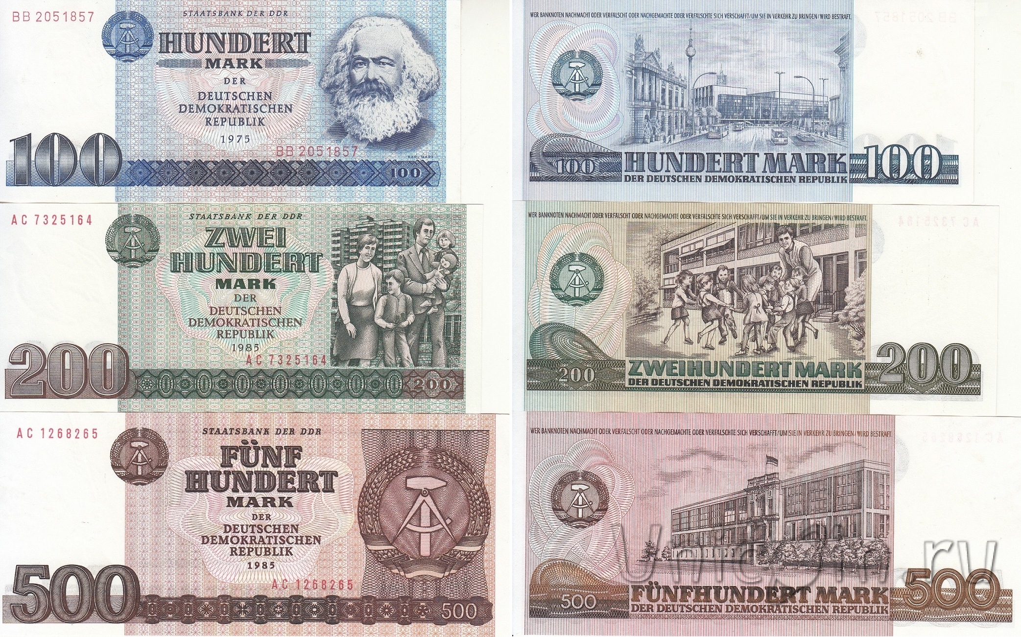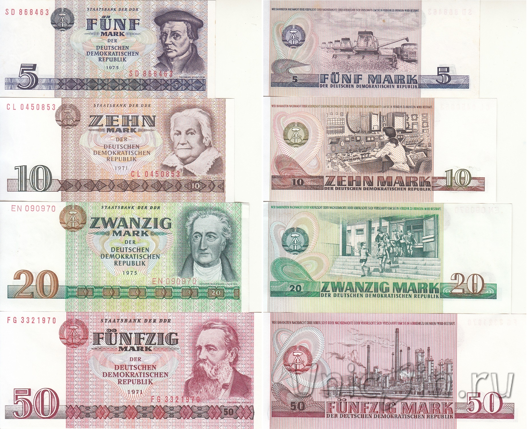 ГДР набор 7 банкнот 5-10-20-50-100-200-500 марок 1971-1985
