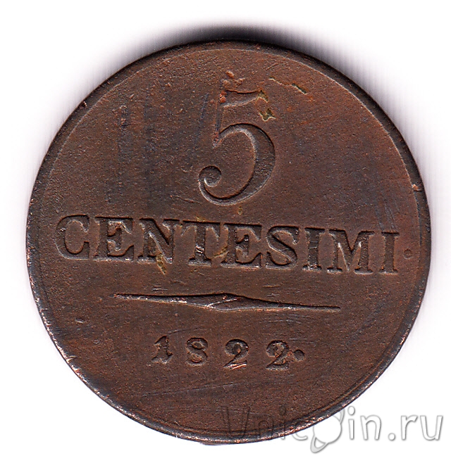 Ломбардо-Венецианское королевство 5 чентезимо 1822 г.