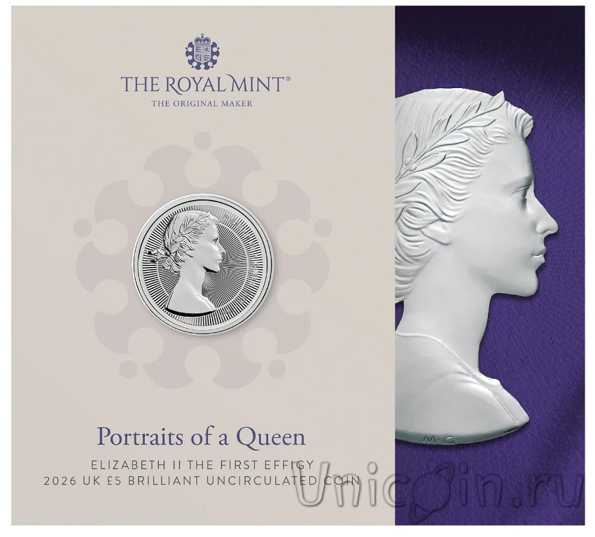 Великобритания 5 фунтов 2026 Портрет Королевы 1953 года
