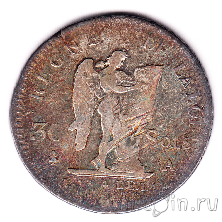 Франция 30 солей 1792 г. Надпись "ROI DES FRANÇOIS"