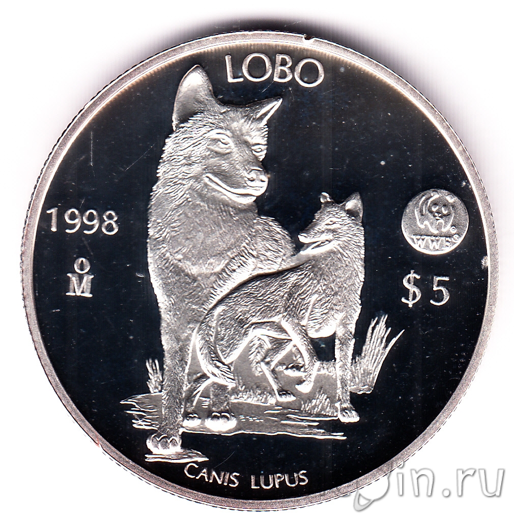 Мексика 5 песо, 1998 Всемирный фонд дикой природы - Волк