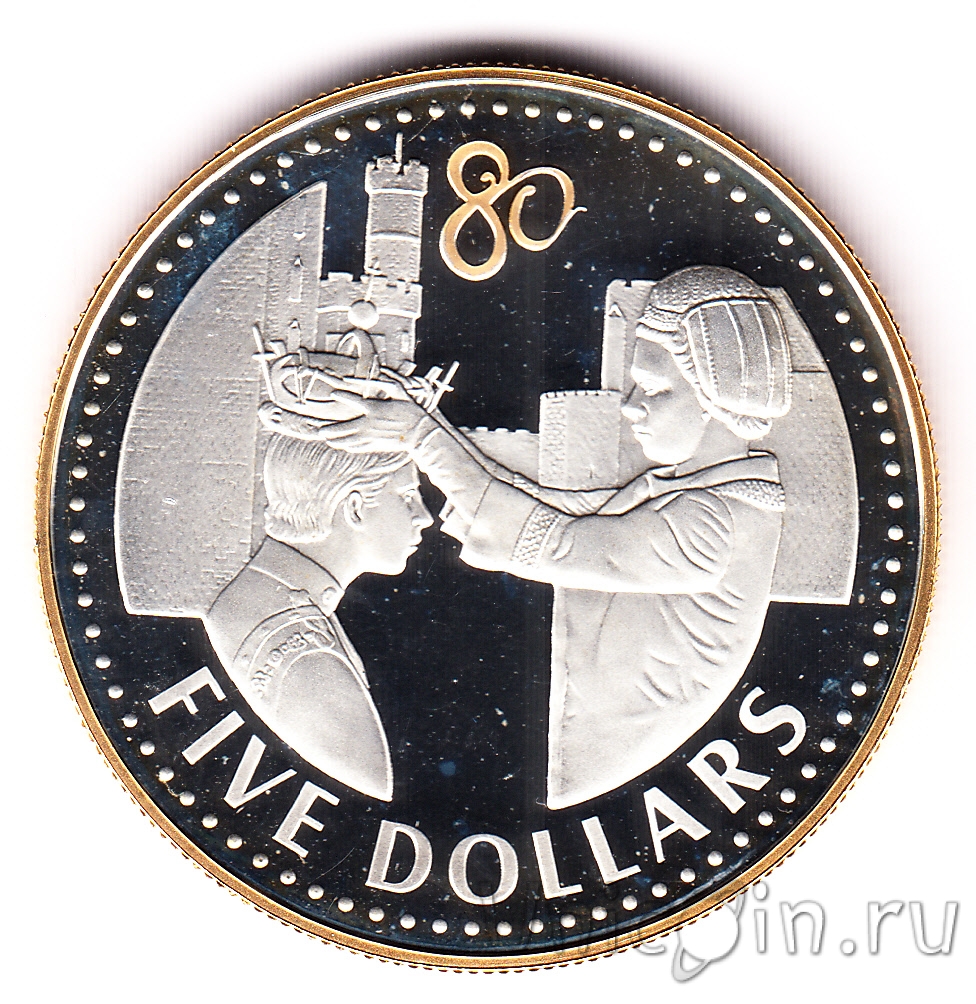 Каймановы острова 5 долларов 2006 г. 80-летие со дня рождения королевы Елизаветы II.
