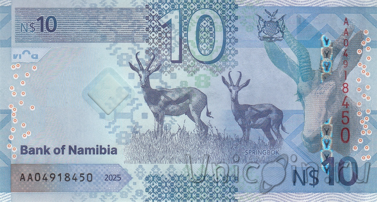 Намибия 10 долларов 2025 (новый тип)