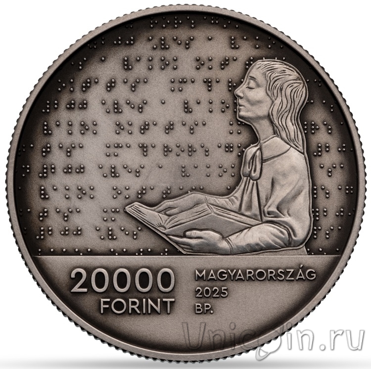 Венгрия 20000 форинтов 2025 200 лет - образование для слепых в Венгрии (серебро)