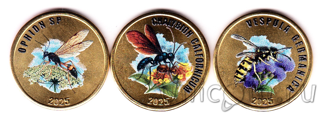 Остров Чилоэ набор 3 монеты 2 фунта 2025 г. Насекомые: Осы и Офион