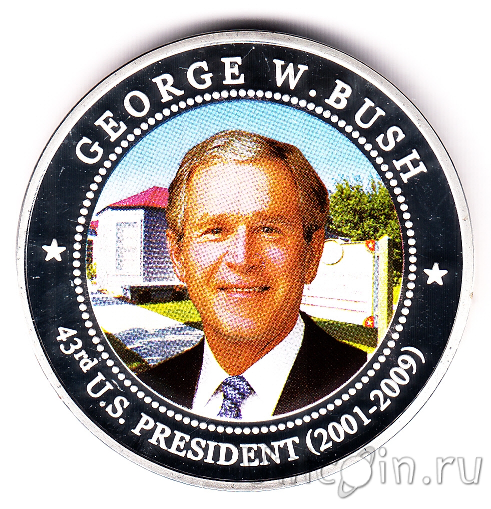 Либерия 5 долларов 2010 г. Джордж Буш — младший