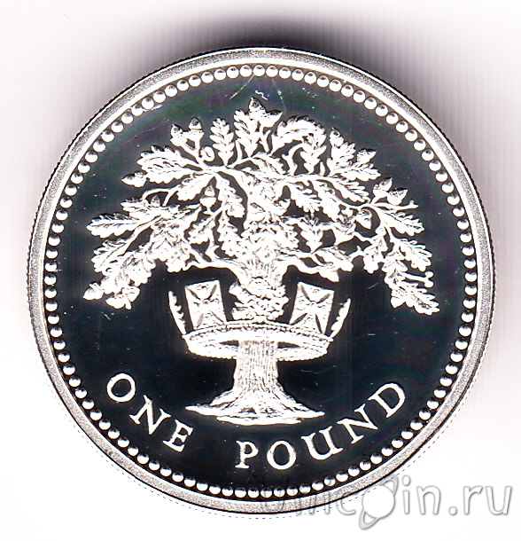 Великобритания 1 фунт 1987 г. Дуб (серебро, PIEDFORT - монета двойной толщины)