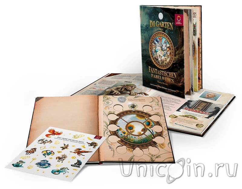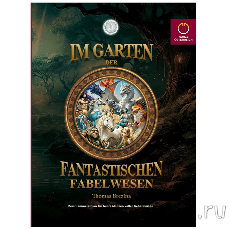Официальный альбом Австрийского монетного двора для монет 3 евро Австрии серии "Мифические существа"