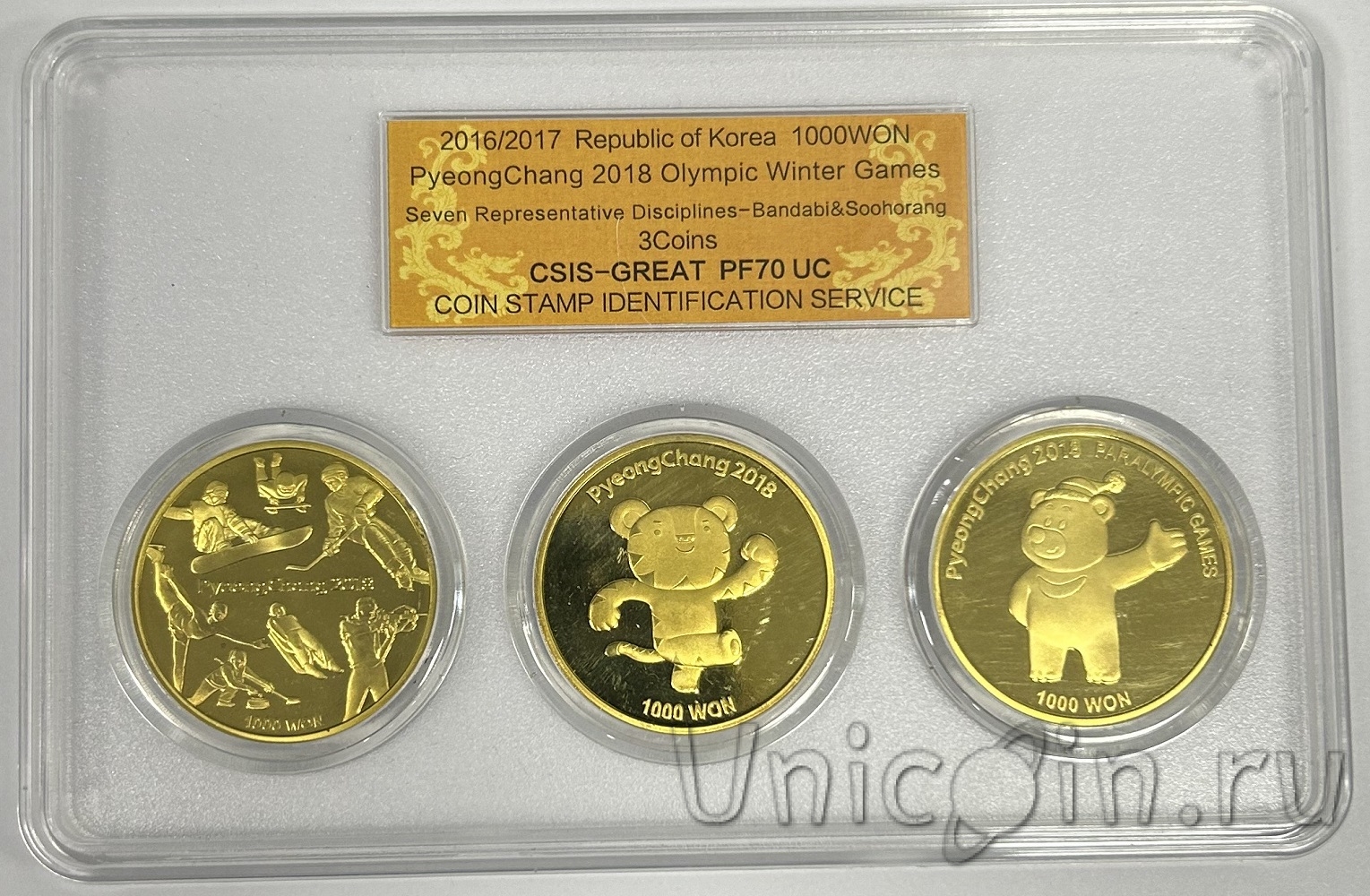 Республика Корея набор 3 монеты 1000 вон 2016-2017 гг. XXIII зимние Олимпийские игры, Пхёнчхан 2018