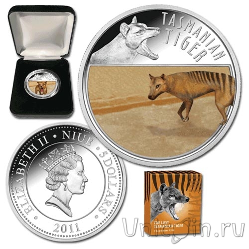 Ниуэ 5 долларов 2011 Последний Тасманийский тигр