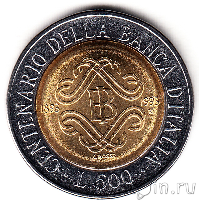 Италия 500 лир 1993 г. 100 лет банку Италии