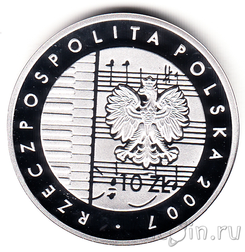 Польша 10 злотых 2007 г. Кароль Шымановский — польский композитор, пианист, педагог, музыкальный критик. Один из наиболее заметных деятелей польской музыкальной культуры первой половины XX века.