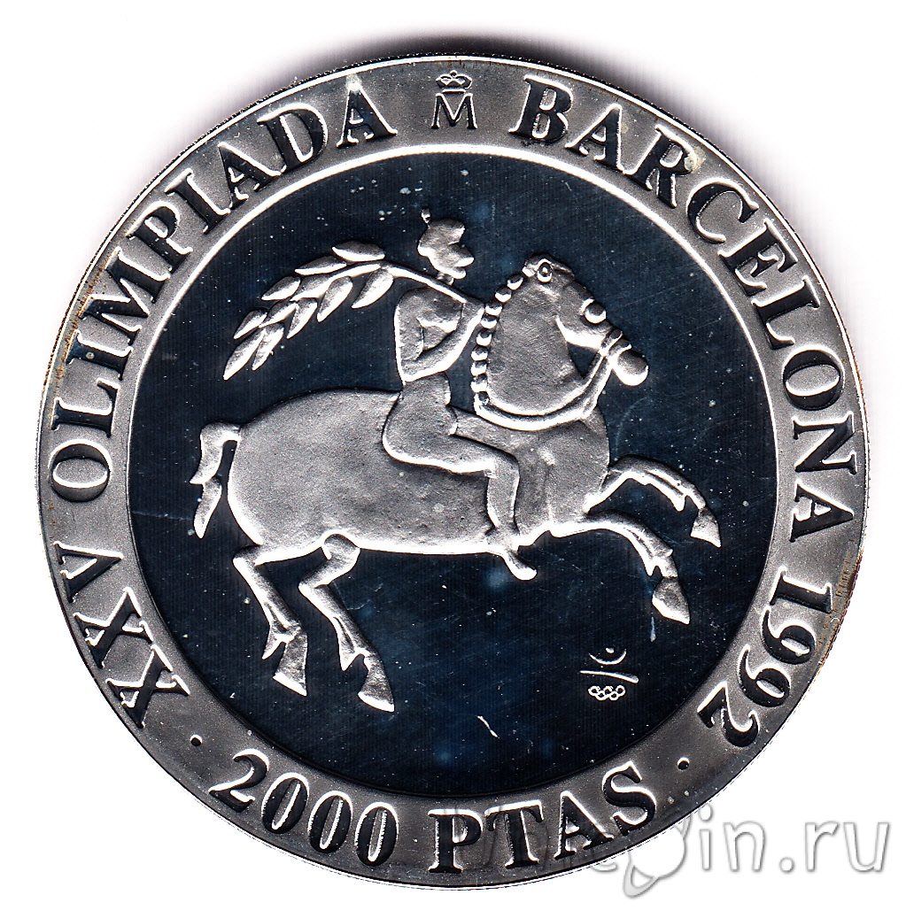 Олимпийская серебряная монета. Испания 2000 песет 1991 г. Олимпиада в Барселоне