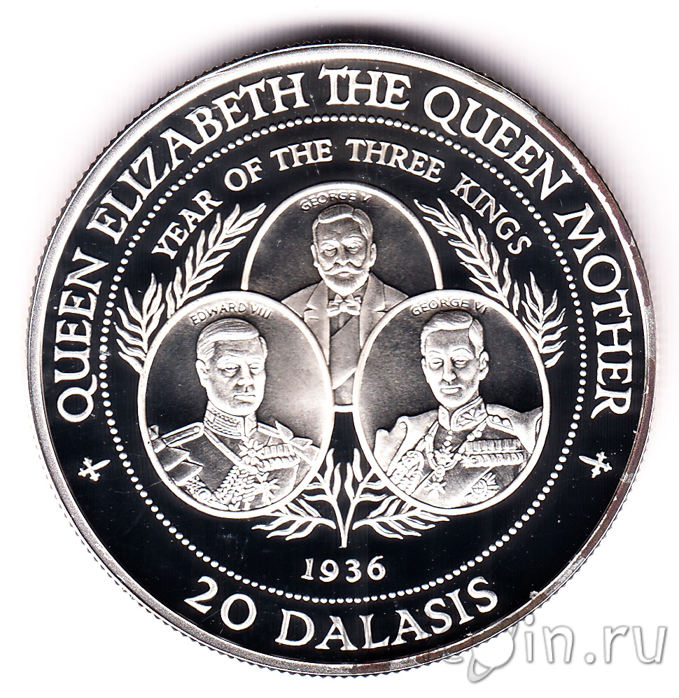 Гамбия 20 даласи 1994 г. Королева Елизавета, королева‑мать - Год трех королей
