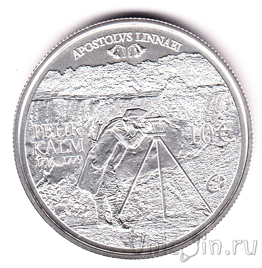 Финляндия 10 евро 2011 г. Пер Кальм — финский (шведский) естествоиспытатель, путешественник, профессор экономики в Королевской академии Або (Турку). Один из «апостолов Линнея».